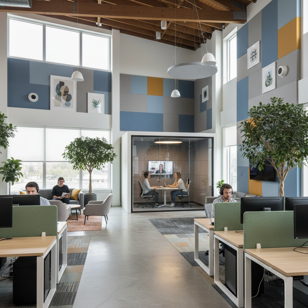 How acoustics drive workplace well-being: less reverberation, more focus and clearer speech. Practical approach, use cases and DABSO inspiration.