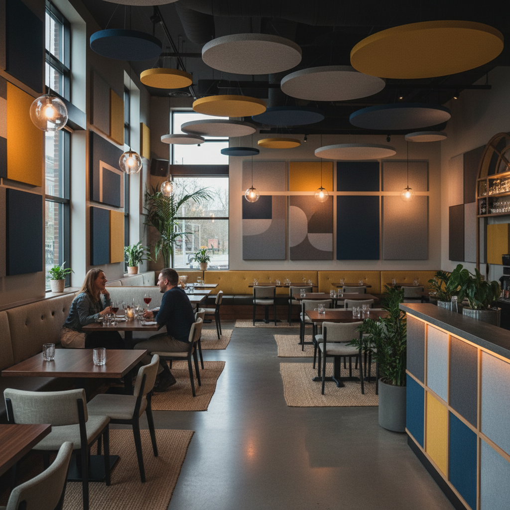 How to reduce noise and improve acoustic comfort in restaurants. Wall and ceiling solutions, layout tips and reverberation time assessment.